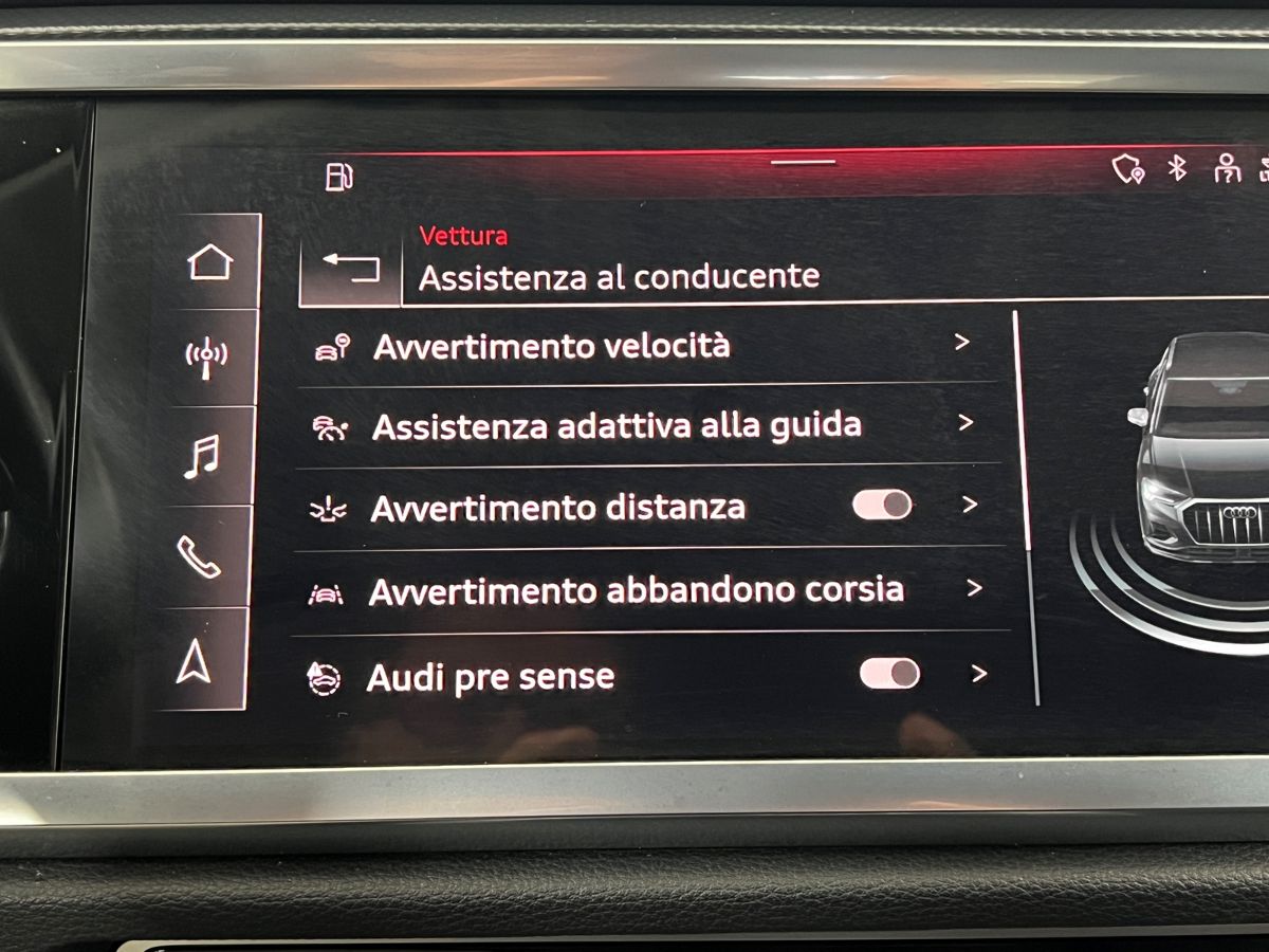Equipaggiamento in dotazione : cruise control adattivo, retrovisore auto anabbagliante, audi pre sense, freno a mano elettronico, illuminazione interna a led, ruota di scorta, bluetooth, specchietti riscaldabili e ripiegabili elettricamente, fari led ant e post con luci diurne a led, volante multifunzione a tre razze, mancorrenti, bracciolo, navigatore, sistema di ausilio al parcheggio plus (ant e post) con retrocamera, audi virtual cockpit, connessione ios e android, cerchi da 19, lane assist, clima automatico bizona, hill holder, sensore luci e pioggia, bagagliaio elettrico.